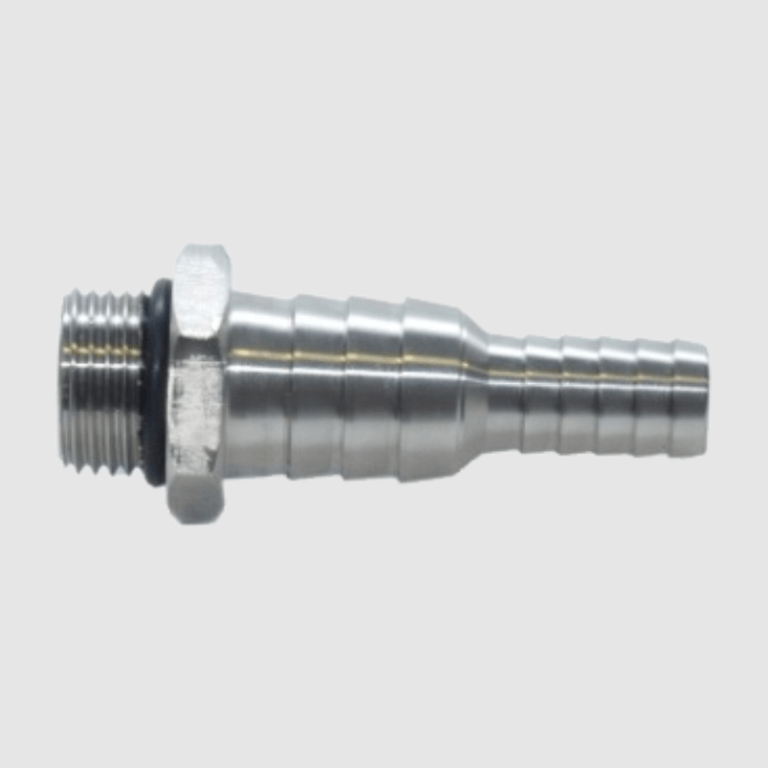 Złącze ze stali nierdzewnej do węzy 3/4″ i 1/2″ zakończone jest gwintem zewnętrznym 1/2″. Złącze przeznaczone do łączenia odciętego węża bez zakuć z pistoletami.