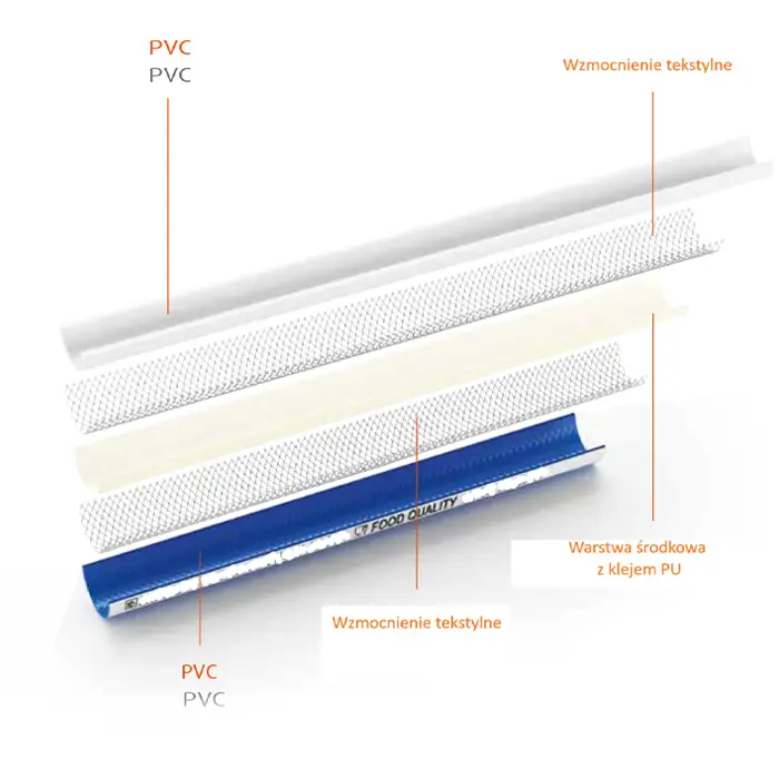 3-warstwowy wąż PVC o gładkiej powierzchni.